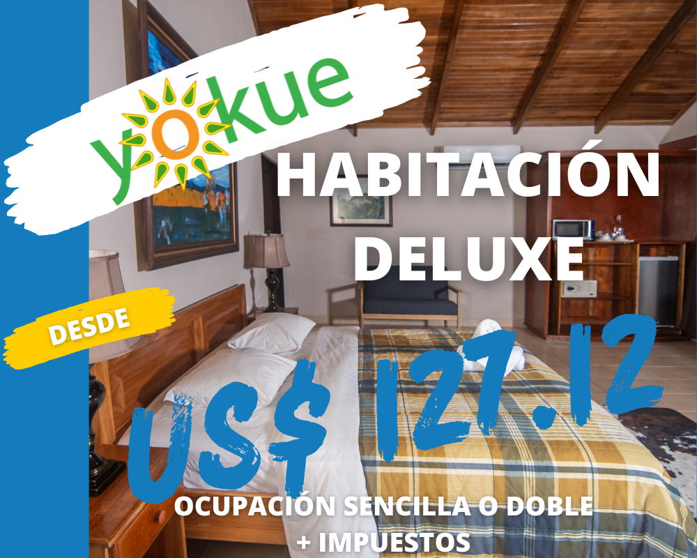 La habitación deluxe cuenta con una cama tipo King, 44 metros cuadrados de acogedor espacio, equipada con escritorio, refrigeradora, micro hondas, baño privado, coffe maker, WiFi, TV por cable, caja de seguridad y aire acondicionado.