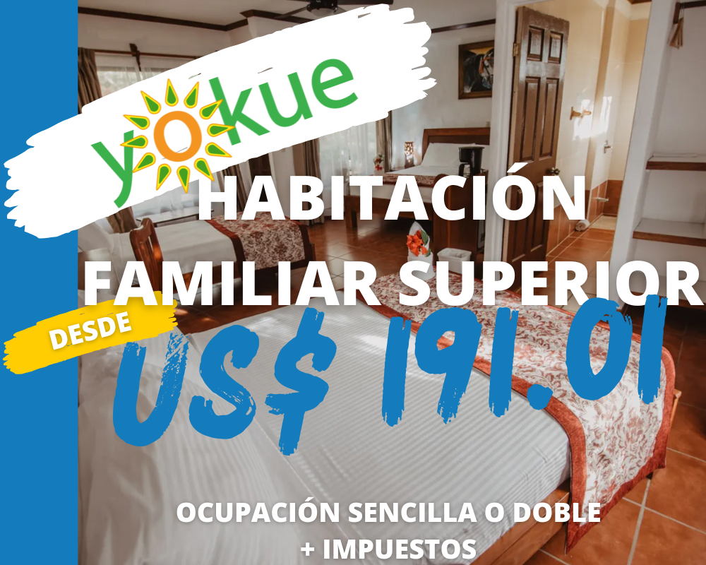Una solución perfecta para familias o grupos de amigos cercanos que desean compartir alojamiento. Nuestras habitaciones familiares superiores se encuentran cerca del área de recepción, del área de piscina, restaurante y centro de aventuras. Disfrute de las vistas de la vegetación tropical y de la diversa variedad de aves desde su porche o terraza. Las habitaciones Familiar Superior vienen en una variedad de camas: una cama individual, una doble y una king. Cada habitación tiene una caja fuerte, aire acondicionado, ventilador de techo, mini refrigerador, televisión por cable, cafetera y teléfono, además de un calentador de agua ecológico. Las tarifas de la habitación incluyen desayuno, acceso a cataratas y acceso ilimitado a las aguas termales de Rio Negro y baños de lodo volcánico.